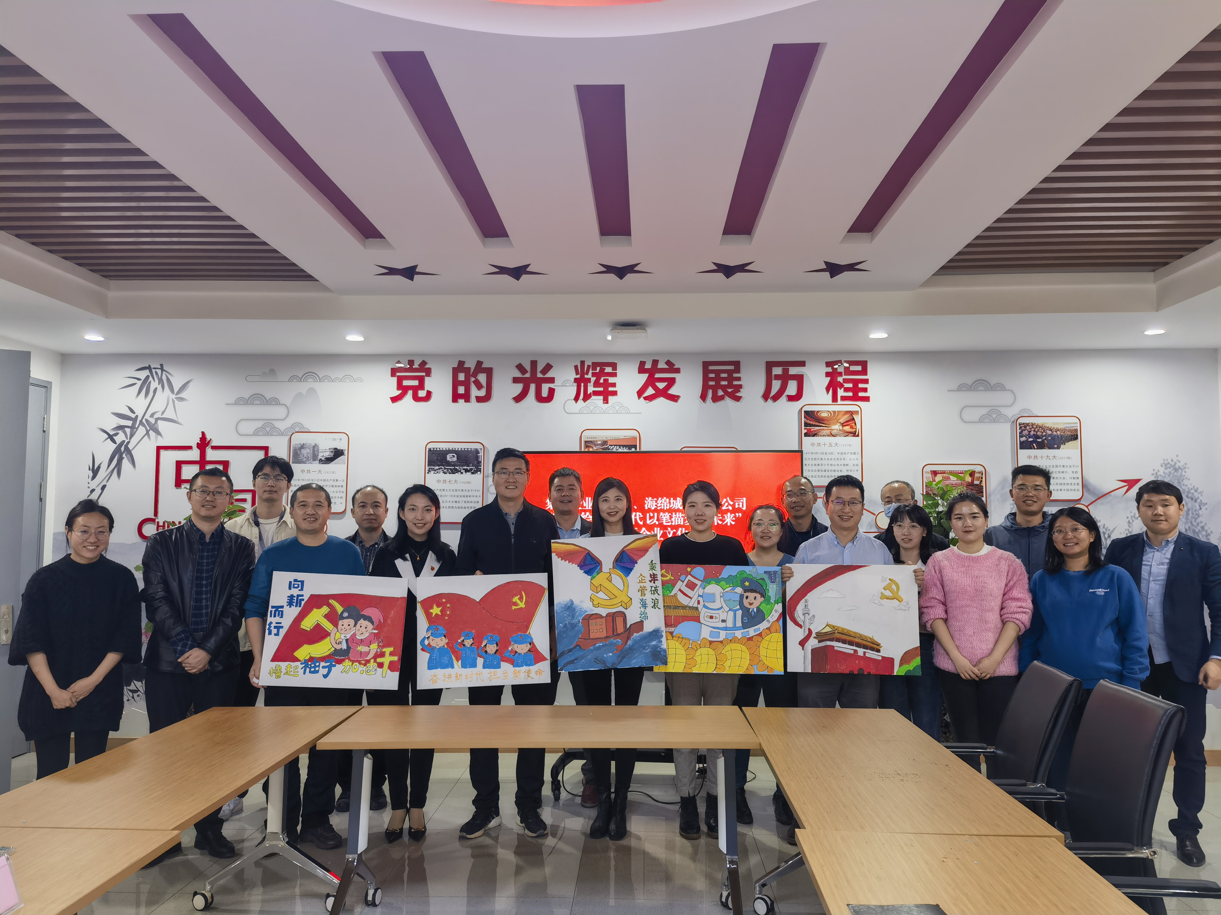 為慶祝中國共產黨第二十次全國代表大會勝利召開,深入學思踐悟會議精神,重溫初心使命,激發干部員工擔當信念。10月28日下午,灃西集團海綿城市技術公司黨支部、團支部聯合企業管理部黨支部、團小組開展“以手繪心畫時代,以筆描夢向未來”主題黨日暨企業文化活動。活動集中學習了《中國共產黨第二十次全國代表大會報告》、新華社社評文章《肩負起新時代新征程黨...