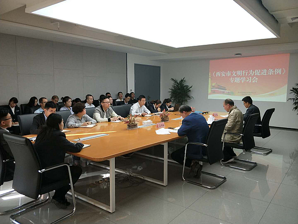 9月30日,組織學習《西安市文明行為促進條例》,物業公司職能部門全體人員、項目負責人參加會議。