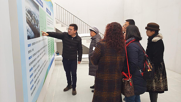 調(diào)研組一行在參觀了西部交大創(chuàng)新港、大數(shù)據(jù)中心后,來(lái)到總部經(jīng)濟(jì)園綜合能源站項(xiàng)目,詳細(xì)了解了無(wú)干擾地?zé)峁峒夹g(shù)在灃西新城的應(yīng)用情況及節(jié)能減排的作用,學(xué)習(xí)了無(wú)干擾地?zé)峁岬募夹g(shù)原理和技術(shù)優(yōu)勢(shì)。隨后參觀了同德佳苑中深層地?zé)崮軣o(wú)干擾清潔供熱示范項(xiàng)目。能源公司相關(guān)同志介紹了該技術(shù)在新城的應(yīng)用情況、技術(shù)原理與優(yōu)勢(shì)、節(jié)能減排作用等方面。