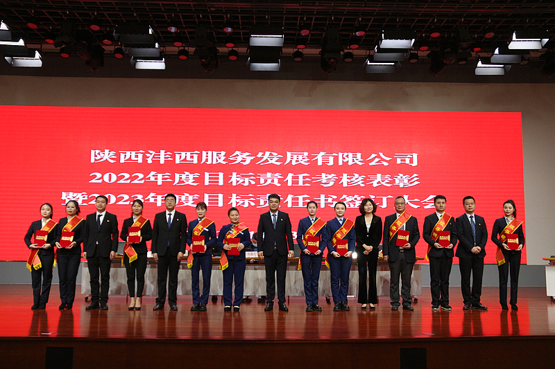 1月13日上午,灃西服務召開2022年度目標責任考核表彰暨2023年度目標責任書簽訂大會,集團公司副總經理秦繼紅,灃西服務全體領導班子成員參加。