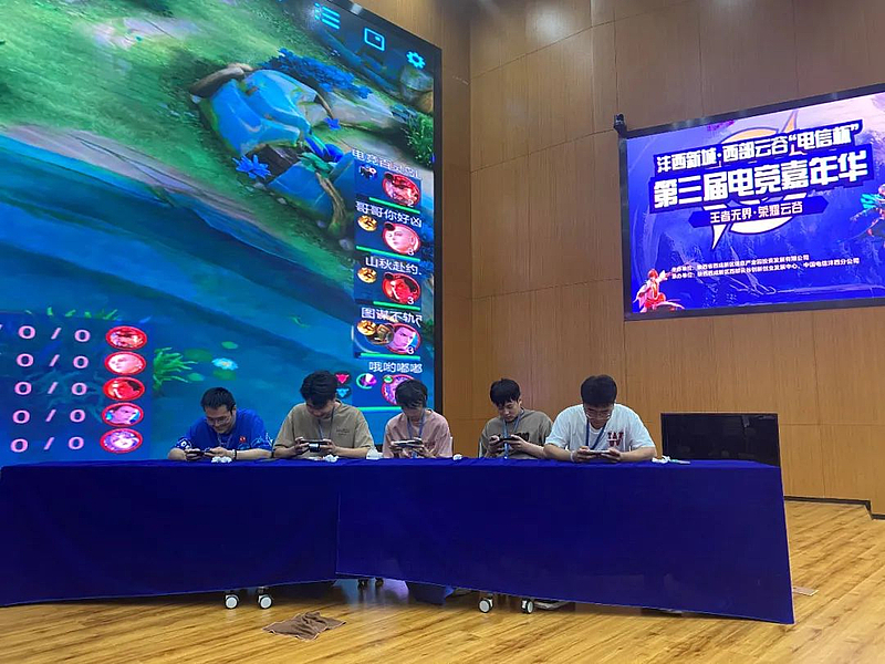 比賽現場,各位選手精湛操作,游戲局勢愈演愈烈,臺下觀賽的選手也被帶動起來,“上路救一波!”“對對對,就是現在……”激烈的角逐在比賽現場掀起了一次次小高潮。