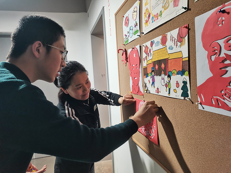 此外,宿舍美化大賽上,學(xué)生和宿管共同用書(shū)法、剪紙、繪畫(huà)等藝術(shù)表現(xiàn)形式,裝扮宿舍樓內(nèi)文化展板,通過(guò)美化宿舍生活環(huán)境,促使學(xué)生們的人文素養(yǎng)和審美進(jìn)一步提升。