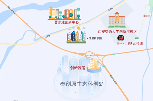 【商業(yè)覆蓋】毗鄰曹家灘創(chuàng)新中心、道科廣場、西安交大創(chuàng)新港醫(yī)院等商業(yè)及醫(yī)療資源。