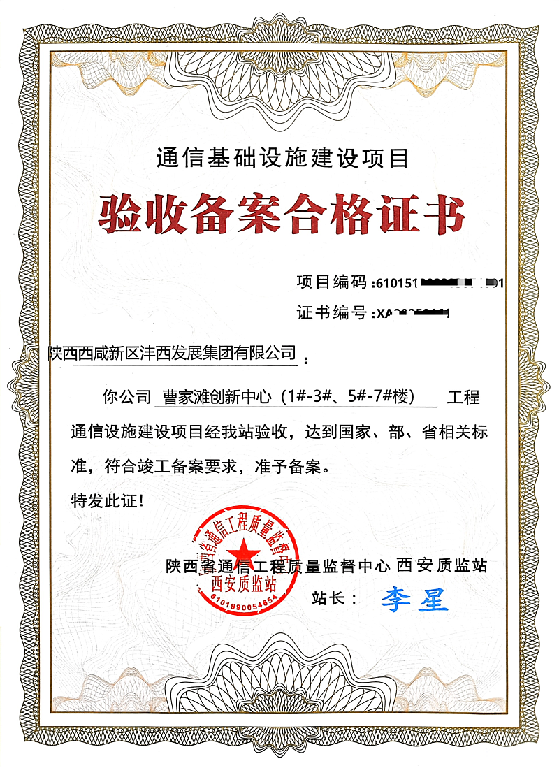 陜西灃西科創發展有限公司(以下簡稱“灃西科創”)承擔了曹家灘創新中心三網融合寬帶通信設施建設工作。為了確保順利驗收,灃西科創組織項目團隊從經濟性、科學性、拓展性以及兼容性四個方面對項目進行反復論證,提供了最優的設計方案,同時在施工過程中打通了機房標準化建設及網絡部署等關鍵環節技術難點,打造了一個穩定、高速且具備高度可擴展性的通信基礎環境,為更多科技型企業入駐后開展智能化生產、遠程運維等高帶寬、低時延業務打下了堅實基礎。