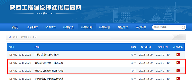 近日,由灃西集團海綿城市技術公司聯合陜西省城鄉規劃設計研究院主編的《海綿城市雨水滲井技術規程》(DB61/T5048-2022)《海綿城市建設項目評價標準》(DB61/T5047-2022)2項省級地方標準批準發布,目前已正式實施。下一步灃西集團將全力加快在研省級標準及企業標準報批發布進度切實發揮評價指標體系的“標尺”和“指揮棒”作用為區...