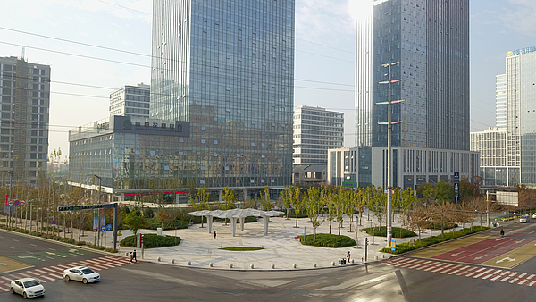創業廣場位于灃西新城康定路與同德路十字西南角,總占地面積約4600平方米,廣場鋪裝面積2900平方米。