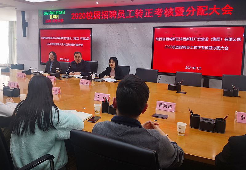 1月28日下午,灃西集團召開2020校園招聘員工轉正考核暨分配大會,總經理姜勤發出席會議并講話。
