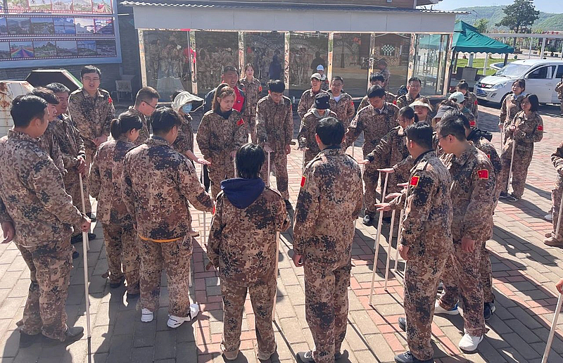各隊學員們用獨輪車“運輸物資”,齊心協力“雷區”取水,爭先恐后完成“手榴彈”投擲體驗,在崎嶇的路上,克服道路和身體力量的阻礙,奮力前行,身臨其境地體會革命先輩在艱苦環境中頑強抗爭、勇于犧牲的革命精神。