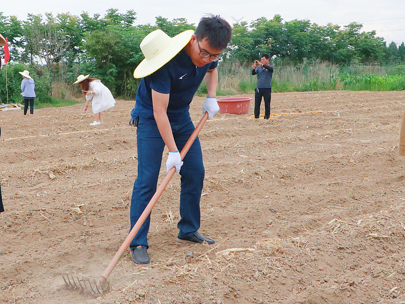 廣大青年團員在農業專業技術人員的帶領下進入種植區,按照作物區域劃分開始勞作。大家拿著鋤頭悉心翻土,將小小的種子按順序播種在對應位置,有條不紊地進行澆水、施肥,精心管護。雖然滿身汗水,但是大家卻樂在其中。