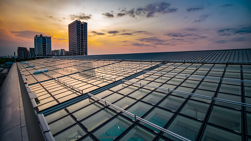 光伏發(fā)電系統(tǒng)通過(guò)對(duì)游泳館進(jìn)行陰影分析,確定建筑與光伏創(chuàng)新融合方案,在游泳館屋頂敷設(shè)高效光伏模塊4200平方米,實(shí)現(xiàn)年發(fā)電量約63萬(wàn)千瓦時(shí),比常規(guī)光伏系統(tǒng)發(fā)電能力提升30%以上。