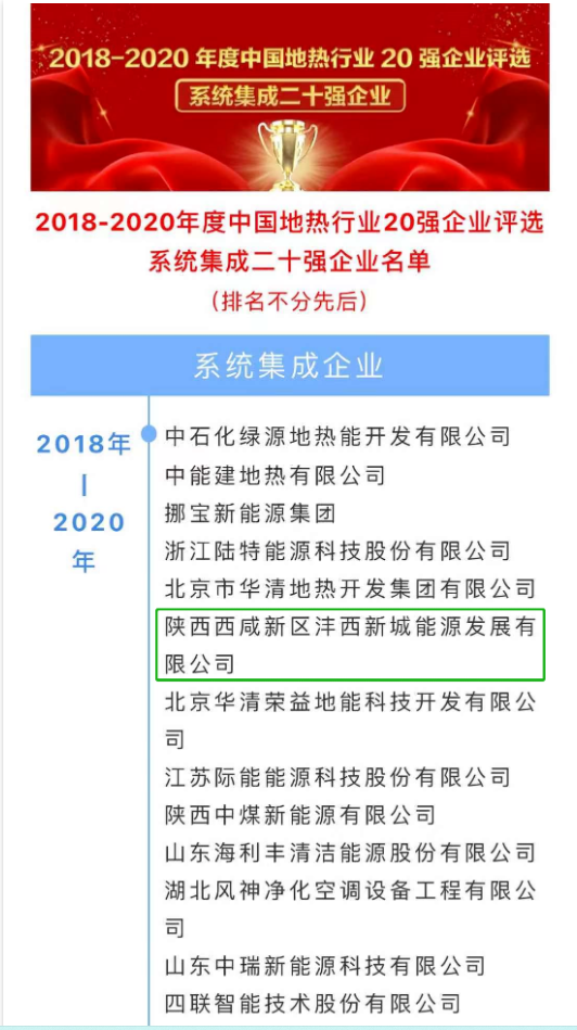 被評為“中國地熱行業(yè)系統(tǒng)集成20強企業(yè)”